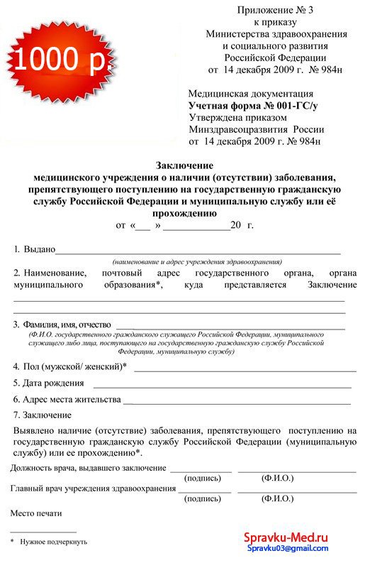 Поводы для выдачи справки для несение госслужбы формы 001 гс у