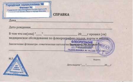 Медицинская справка о проведении флюорографического осмотра