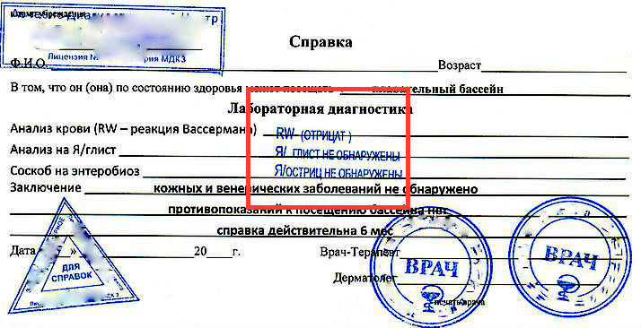 Купить справку в бассейн в Москве